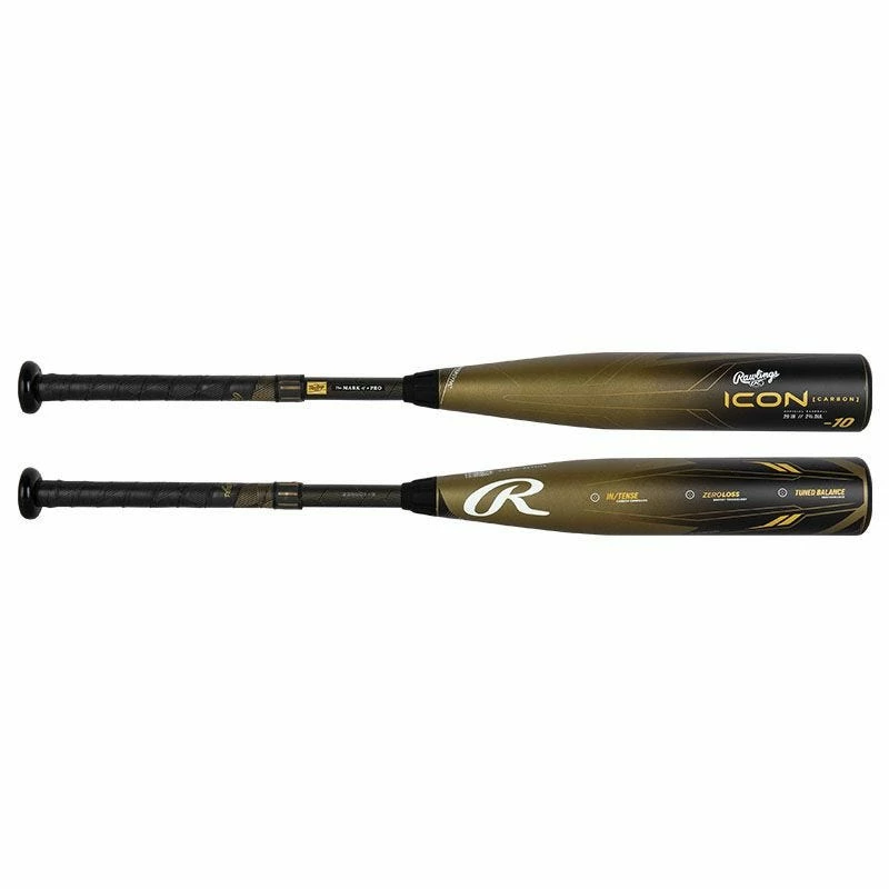 Introducing the 2023 Rawlings Icon (-10) USSSA Baseball Bat! The Icon is a 2-piece composite baseball bat, thus giving the hitter a great feel and optimal flex of the bat when swinging. Rawlings has incorporated several pieces of technology into this bat, including ZERO LOSS Energy Technology. ZERO LOSS Energy Technology is Rawlings re-engineered and perfected locking joint that provides the hitter with the most durable connection possible. This creates a 15% stiffer and smooth transition from handle to barrel while eliminating drag. In/Tense Carbon Composite is also present on the 2023 Icon. This technology is a fully engineered and seamless carbon composite construction across the barrel to provide the largest barrel possible. All of this, while still maintaining the proper stiffness and trampoline where it counts. Icon has Tuned Balance Performance as well, meaning that it provides the hitter with a slightly end-loaded bat and creates the feel and pop that every hitter is after. Lastly, Rawlings included their ZERO LOSS Collar to the Icon. This collar is an innovative TPU Collar at the connection point between the handle and barrel of the bat. This eliminates drag and vibration in the process. Take your game to the next level with the Rawlings Icon (-10) USSSA Baseball Bat!